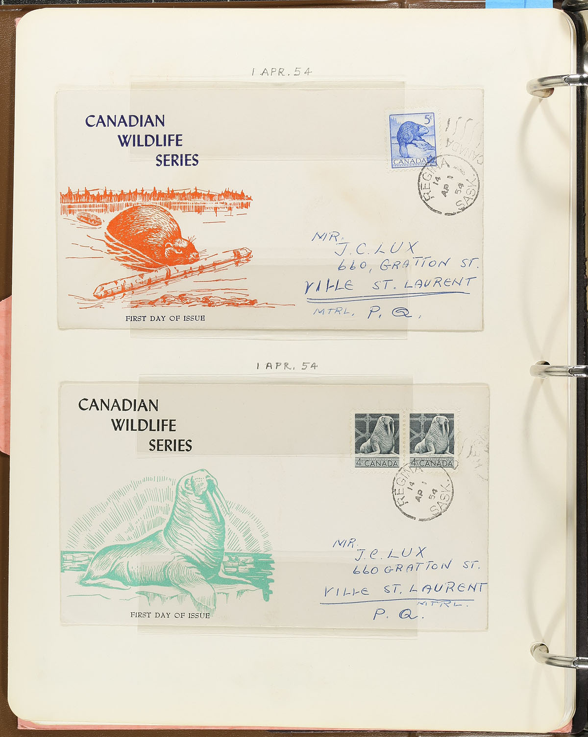 Collection of mint and used Canada, 1952-1993, in a few hundred annual collection pages, album or stock pages, housed in 5 albums/binders. This collection has a bit of everything noting mint never hinged and or used singles, blocks, plate blocks, booklets and booklet panes, precancels, coils, along with a selection of first day covers (including some from private cachet makers), souvenir cards, and more. Face value alone is in the $125-$150 range. A nice grouping with online photos showing a small sampling. Estimate =