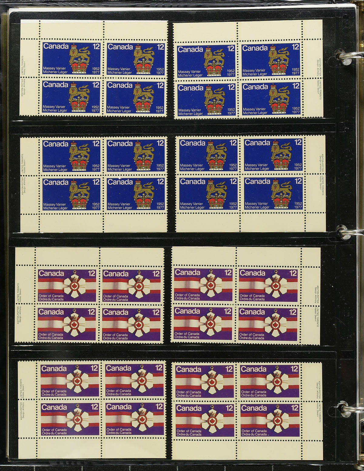 Collection of mint and used Canada, 1952-1993, in a few hundred annual collection pages, album or stock pages, housed in 5 albums/binders. This collection has a bit of everything noting mint never hinged and or used singles, blocks, plate blocks, booklets and booklet panes, precancels, coils, along with a selection of first day covers (including some from private cachet makers), souvenir cards, and more. Face value alone is in the $125-$150 range. A nice grouping with online photos showing a small sampling. Estimate =