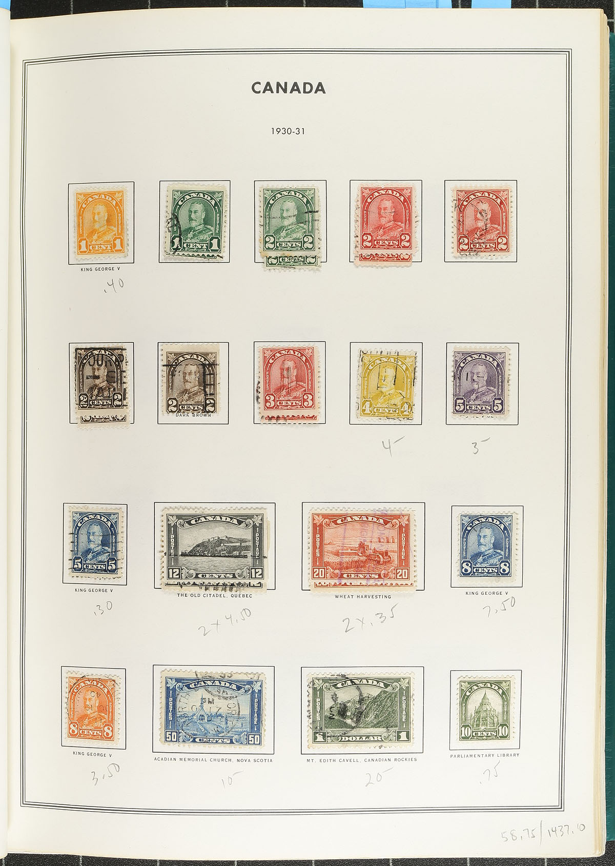 Large collection of used Canada, 1859-2006, containing over 3,000 stamps in a thick Harris album. The collection begins with a few early issues including #s 15, 21, 24, 26-27, with partial sets of Leafs, Numerals, Edwards, Quebecs, with complete sets starting with Admirals, Scrolls, Arch, Pictorials, up to the Peace issues. The collection is fairly complete (roughly 85% in period), from the 1950's to 2006. Duplication up to 2 for some issues, with a few mint hinged stamps found under a used example. A nice collection, including a few socked on the nose town cancels, a few faults with the early issues, overall fine to very fine. Estimate =