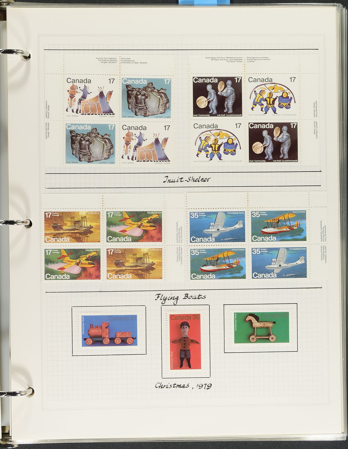Lovely collection of mint Canada commemorative issues, 1978-1988, containing many hundreds of stamps, beautifully organized on hand annotated quadrille pages, housed in a binder with slipcase. The collection ranges from Unitrade #753/1225a, noting the majority of material are plate blocks, with singles, a few booklets and panes, along with a few first day covers and souvenir items. The lot also includes the owner's concluding page stating reasons why the collection ends in 1988. Face value alone totals $204.00. A lovely collection that should be expanded on both ends of the spectrum. Estimate =