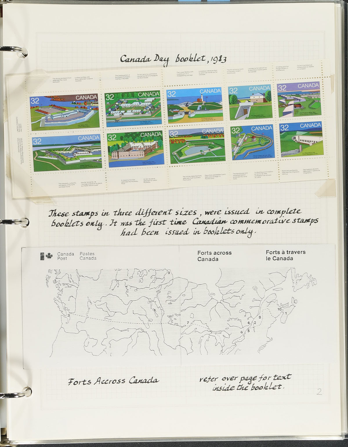 Lovely collection of mint Canada commemorative issues, 1978-1988, containing many hundreds of stamps, beautifully organized on hand annotated quadrille pages, housed in a binder with slipcase. The collection ranges from Unitrade #753/1225a, noting the majority of material are plate blocks, with singles, a few booklets and panes, along with a few first day covers and souvenir items. The lot also includes the owner's concluding page stating reasons why the collection ends in 1988. Face value alone totals $204.00. A lovely collection that should be expanded on both ends of the spectrum. Estimate =