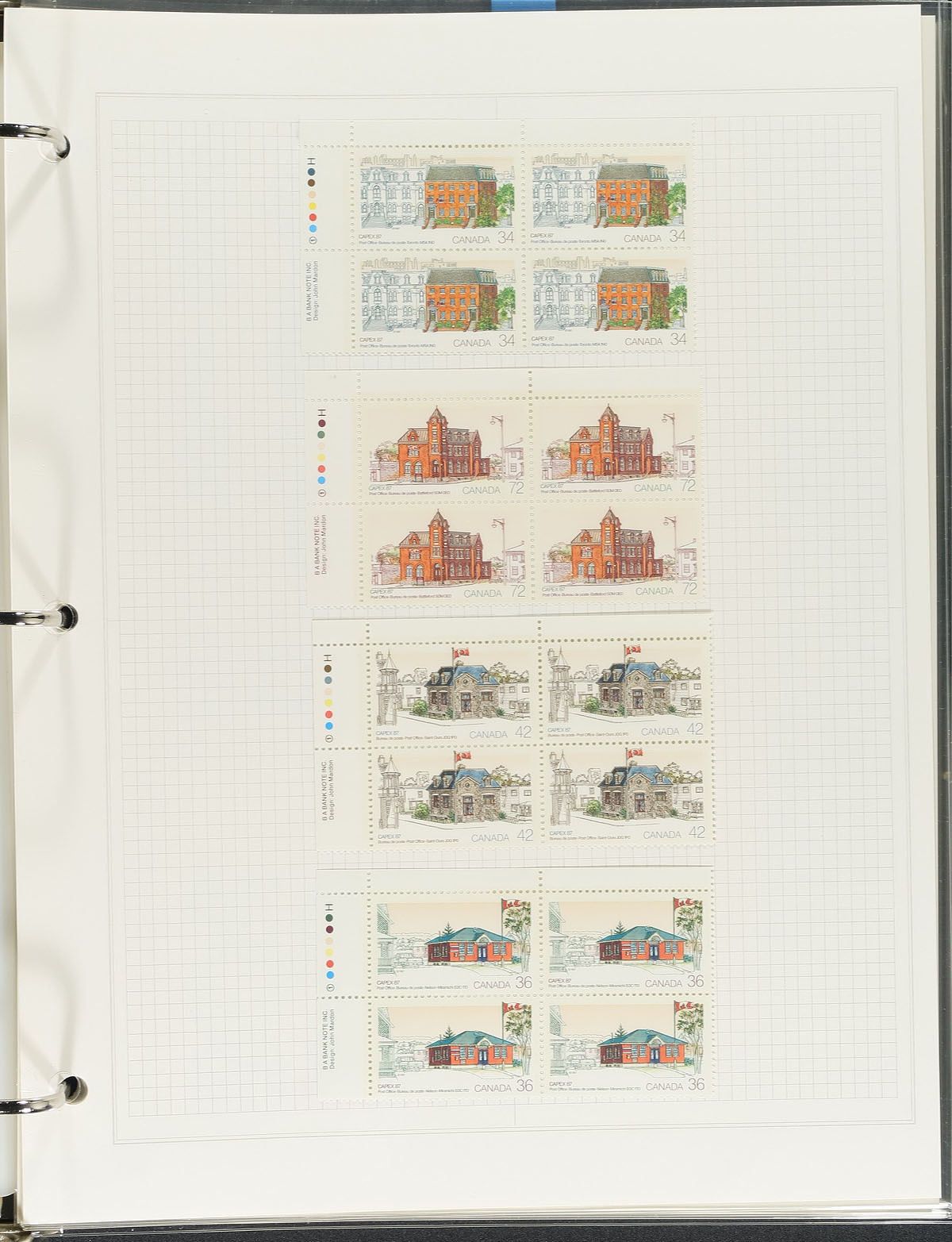 Lovely collection of mint Canada commemorative issues, 1978-1988, containing many hundreds of stamps, beautifully organized on hand annotated quadrille pages, housed in a binder with slipcase. The collection ranges from Unitrade #753/1225a, noting the majority of material are plate blocks, with singles, a few booklets and panes, along with a few first day covers and souvenir items. The lot also includes the owner's concluding page stating reasons why the collection ends in 1988. Face value alone totals $204.00. A lovely collection that should be expanded on both ends of the spectrum. Estimate =