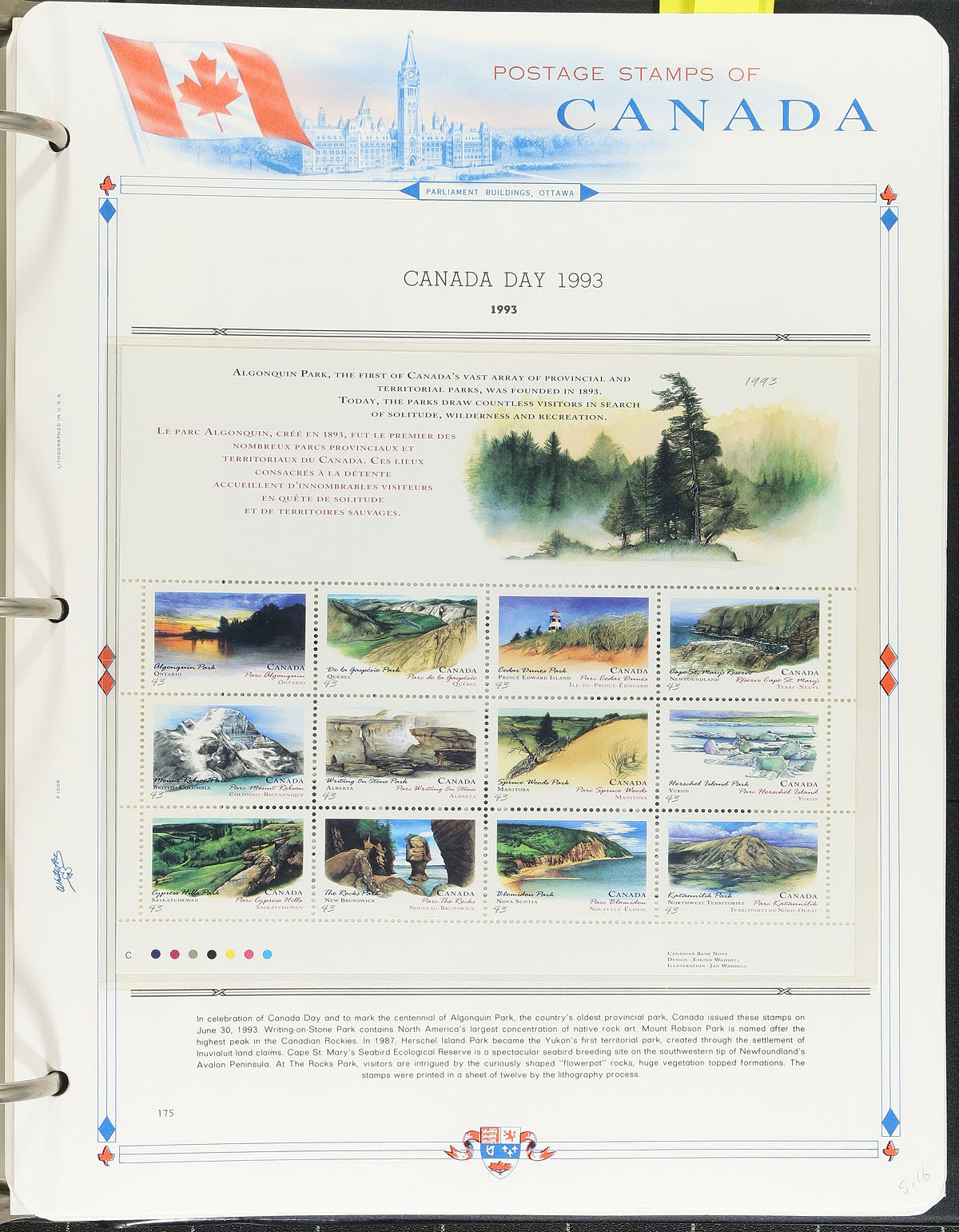 Lovely collection of mint never hinged Canada, 1983-1995, containing several hundreds of stamps, on over 100 hingeless White Ace album pages housed in a thick binder. The collection ranges from Unitrade #924/1587, noting singles, pairs, blocks, souvenir sheets, and a few booklets. Face value alone totals $330.00. Online photos show a few sample pages. A nice collection that should be expanded. Conservatively valued for the total postage value alone. Total face value =