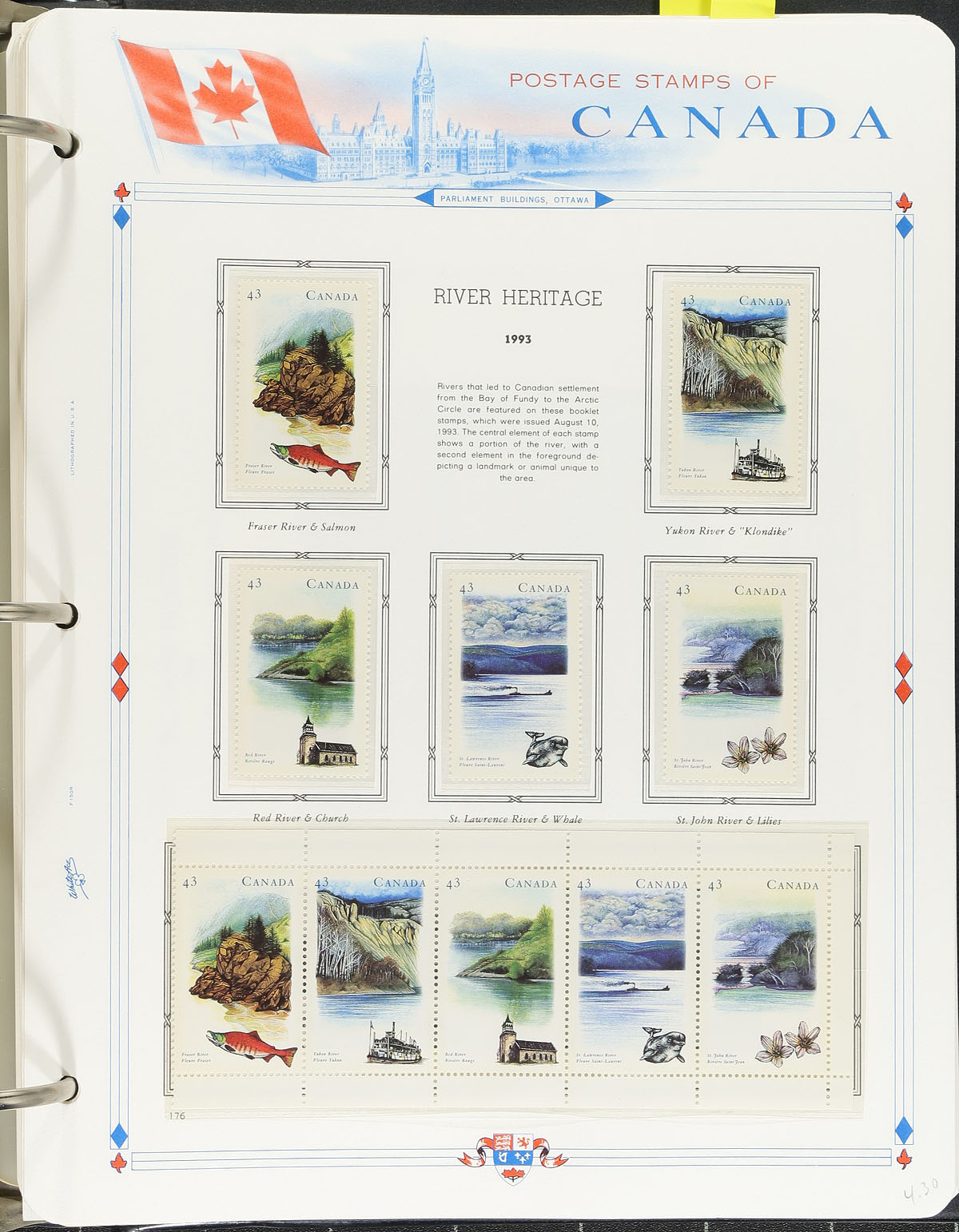Lovely collection of mint never hinged Canada, 1983-1995, containing several hundreds of stamps, on over 100 hingeless White Ace album pages housed in a thick binder. The collection ranges from Unitrade #924/1587, noting singles, pairs, blocks, souvenir sheets, and a few booklets. Face value alone totals $330.00. Online photos show a few sample pages. A nice collection that should be expanded. Conservatively valued for the total postage value alone. Total face value =