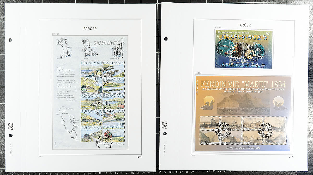Two specialty Davo hingeless albums. The first features a very complete run of used souvenir sheets, all with first day cancels (catalogue value US$639.50) and in excellent condition. The second volume showcases complete sheets of Faroe Island Christmas Seals issued between 1976-2016. The albums alone would cost at least $300.00! Estimate =