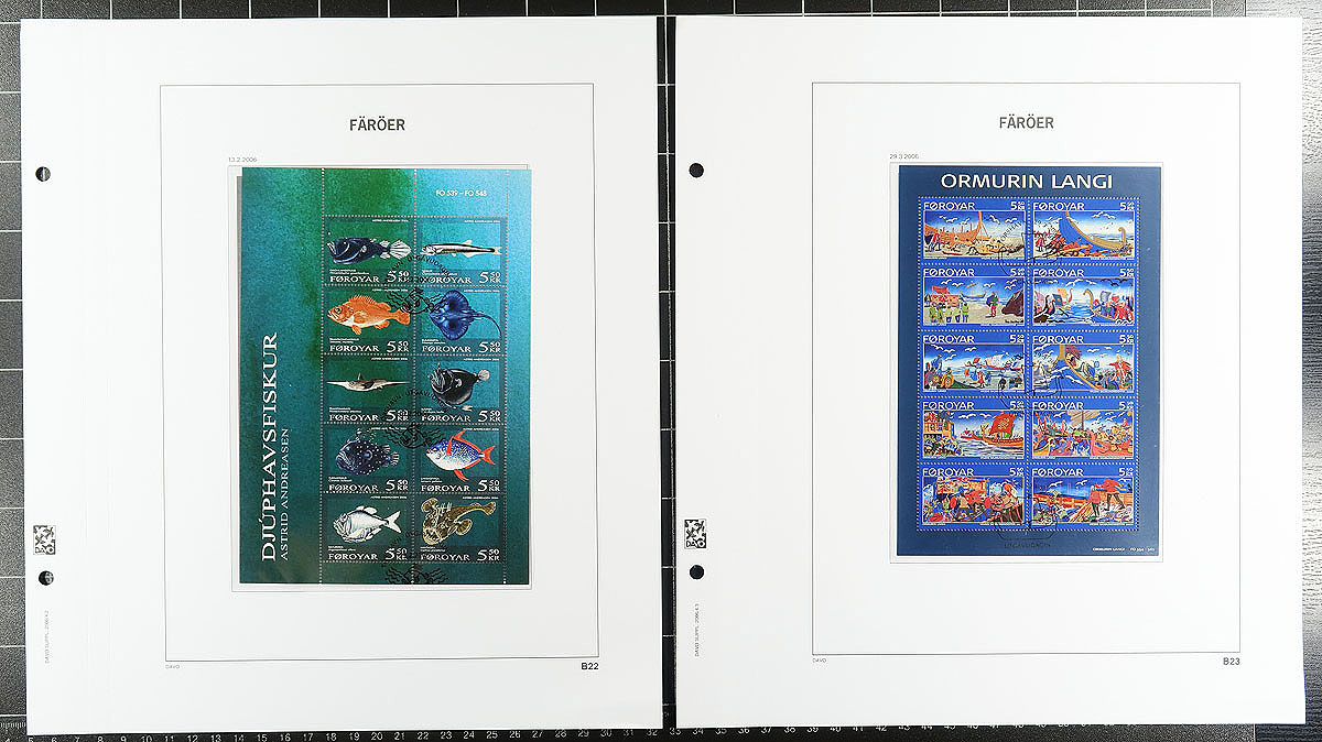 Two specialty Davo hingeless albums. The first features a very complete run of used souvenir sheets, all with first day cancels (catalogue value US$639.50) and in excellent condition. The second volume showcases complete sheets of Faroe Island Christmas Seals issued between 1976-2016. The albums alone would cost at least $300.00! Estimate =