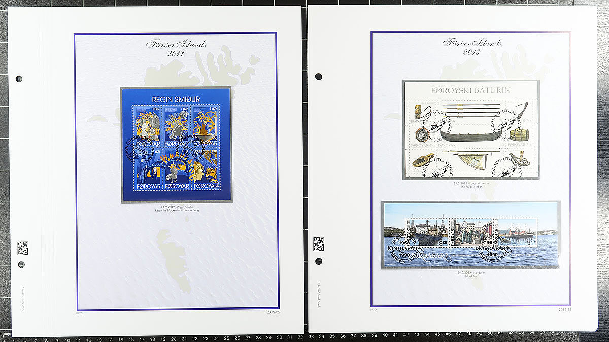 Two specialty Davo hingeless albums. The first features a very complete run of used souvenir sheets, all with first day cancels (catalogue value US$639.50) and in excellent condition. The second volume showcases complete sheets of Faroe Island Christmas Seals issued between 1976-2016. The albums alone would cost at least $300.00! Estimate =