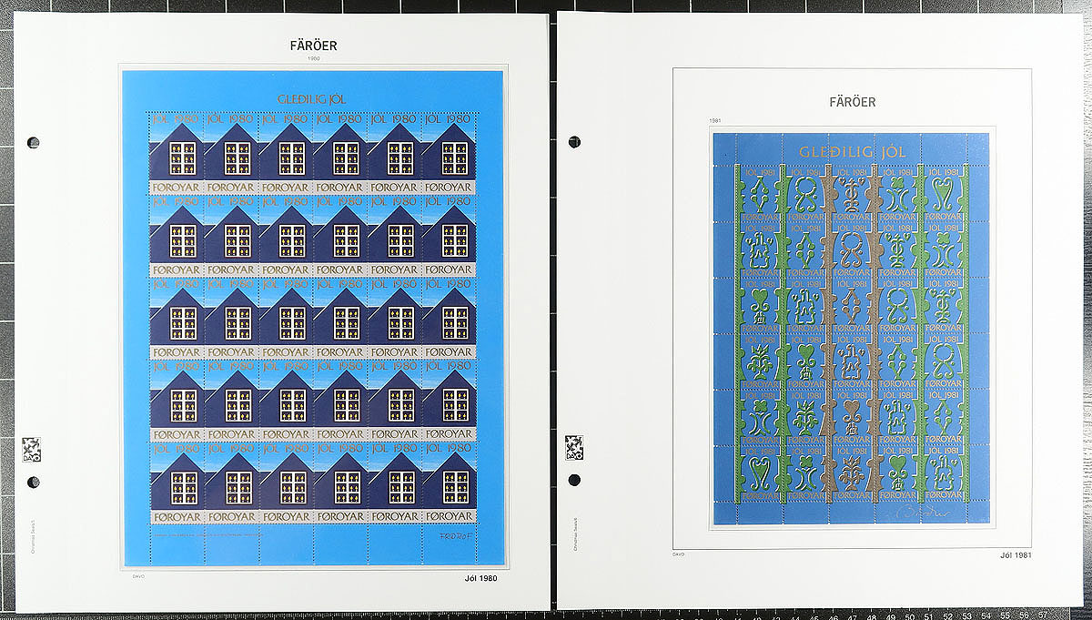 Two specialty Davo hingeless albums. The first features a very complete run of used souvenir sheets, all with first day cancels (catalogue value US$639.50) and in excellent condition. The second volume showcases complete sheets of Faroe Island Christmas Seals issued between 1976-2016. The albums alone would cost at least $300.00! Estimate =