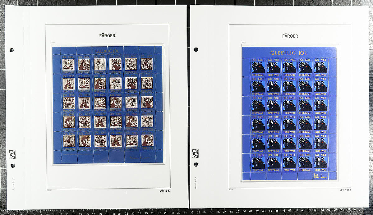 Two specialty Davo hingeless albums. The first features a very complete run of used souvenir sheets, all with first day cancels (catalogue value US$639.50) and in excellent condition. The second volume showcases complete sheets of Faroe Island Christmas Seals issued between 1976-2016. The albums alone would cost at least $300.00! Estimate =