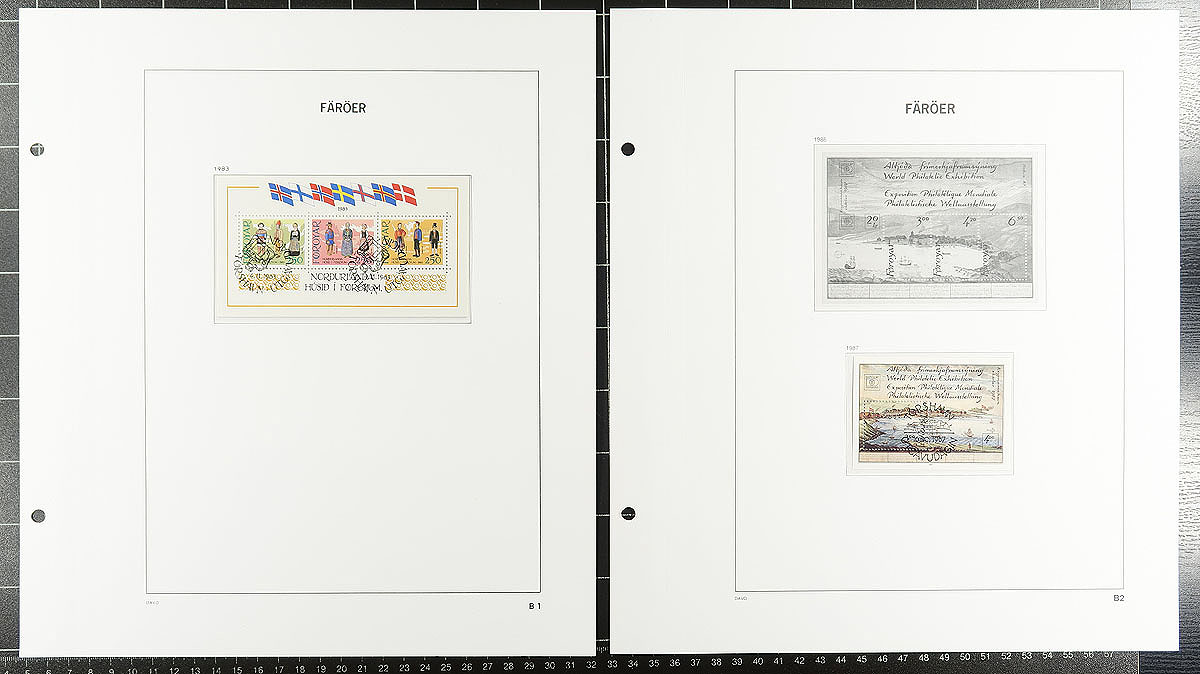 Two specialty Davo hingeless albums. The first features a very complete run of used souvenir sheets, all with first day cancels (catalogue value US$639.50) and in excellent condition. The second volume showcases complete sheets of Faroe Island Christmas Seals issued between 1976-2016. The albums alone would cost at least $300.00! Estimate =
