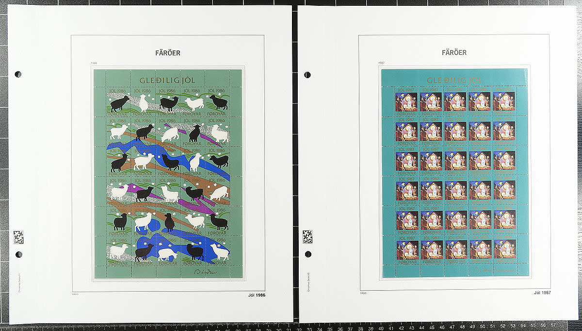 Two specialty Davo hingeless albums. The first features a very complete run of used souvenir sheets, all with first day cancels (catalogue value US$639.50) and in excellent condition. The second volume showcases complete sheets of Faroe Island Christmas Seals issued between 1976-2016. The albums alone would cost at least $300.00! Estimate =
