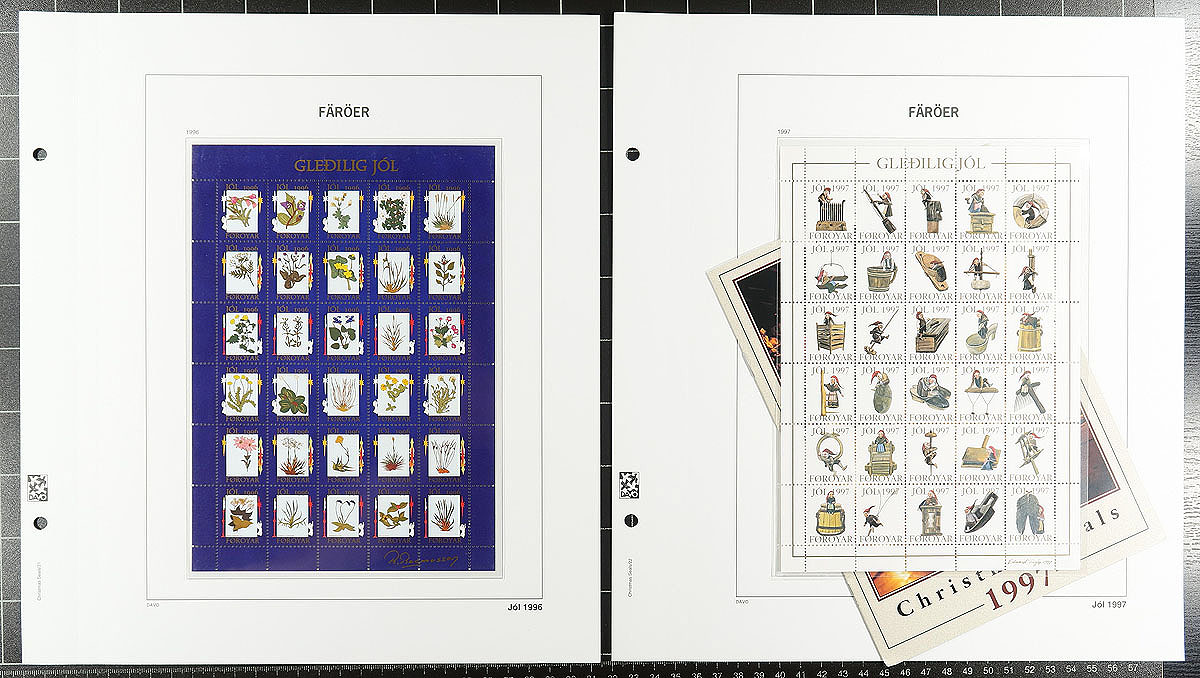 Two specialty Davo hingeless albums. The first features a very complete run of used souvenir sheets, all with first day cancels (catalogue value US$639.50) and in excellent condition. The second volume showcases complete sheets of Faroe Island Christmas Seals issued between 1976-2016. The albums alone would cost at least $300.00! Estimate =