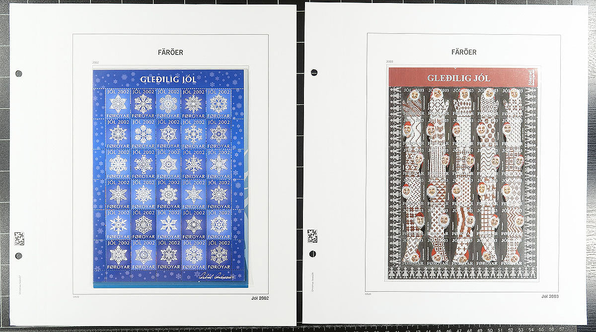Two specialty Davo hingeless albums. The first features a very complete run of used souvenir sheets, all with first day cancels (catalogue value US$639.50) and in excellent condition. The second volume showcases complete sheets of Faroe Island Christmas Seals issued between 1976-2016. The albums alone would cost at least $300.00! Estimate =