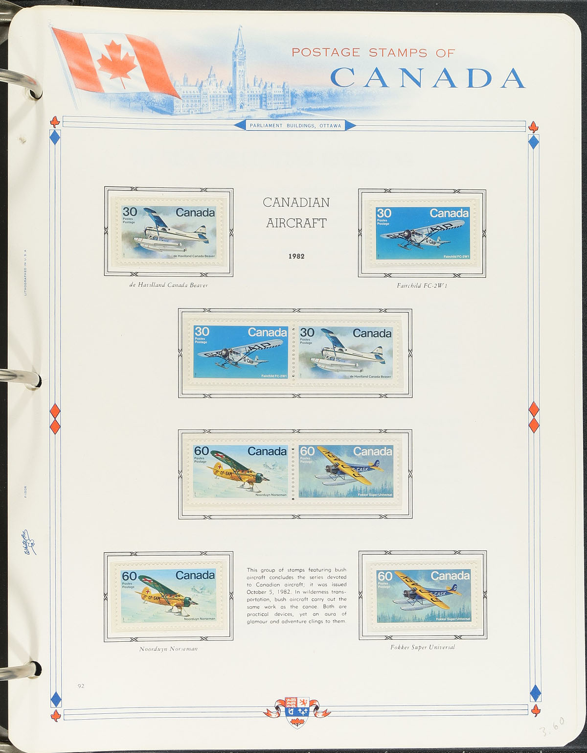 Collection of mint Canada, 1868-1993, containing many hundreds of stamps in hingeless White Ace album pages, housed in a thick binder. The collection begins with a sparse selection of stamps, but did note a few better including Scott #s 21 (lh, $175), 36 (mh, $70), along with mint hinged War and Peace sets. The collection begins to have better completeness post 1950 and almost exclusively never hinged material up to 1993. Face value alone totals $123.00. A nice starter collection, a few faults with a few of the early stamps, overall fine to very fine. Estimate =
