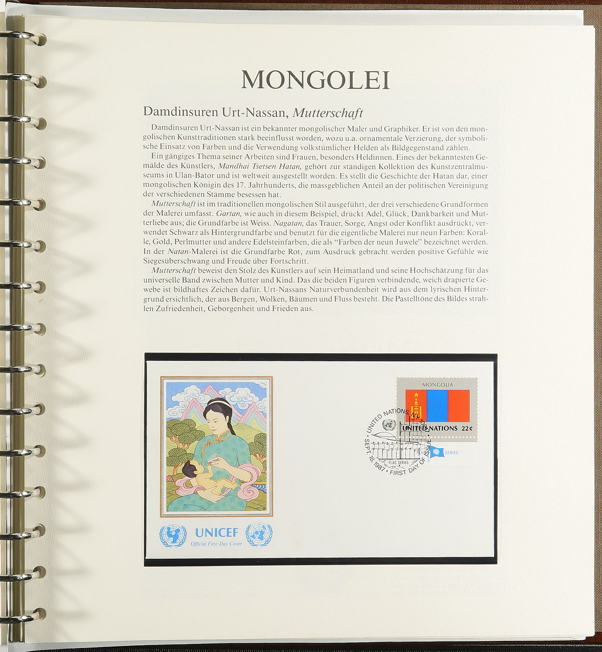 Group of Thematic collections and material filling a carton including: Unicef collection in 4 volumes, U.N. Flag sets 1985-1986, 3 "Our World" packs, FDC Cover of the Month, British Royalty stamps, and a stockbook containing mint sets with a scenery theme. A nice mixture of stamps and covers for the thematic or topical collector. Estimate =