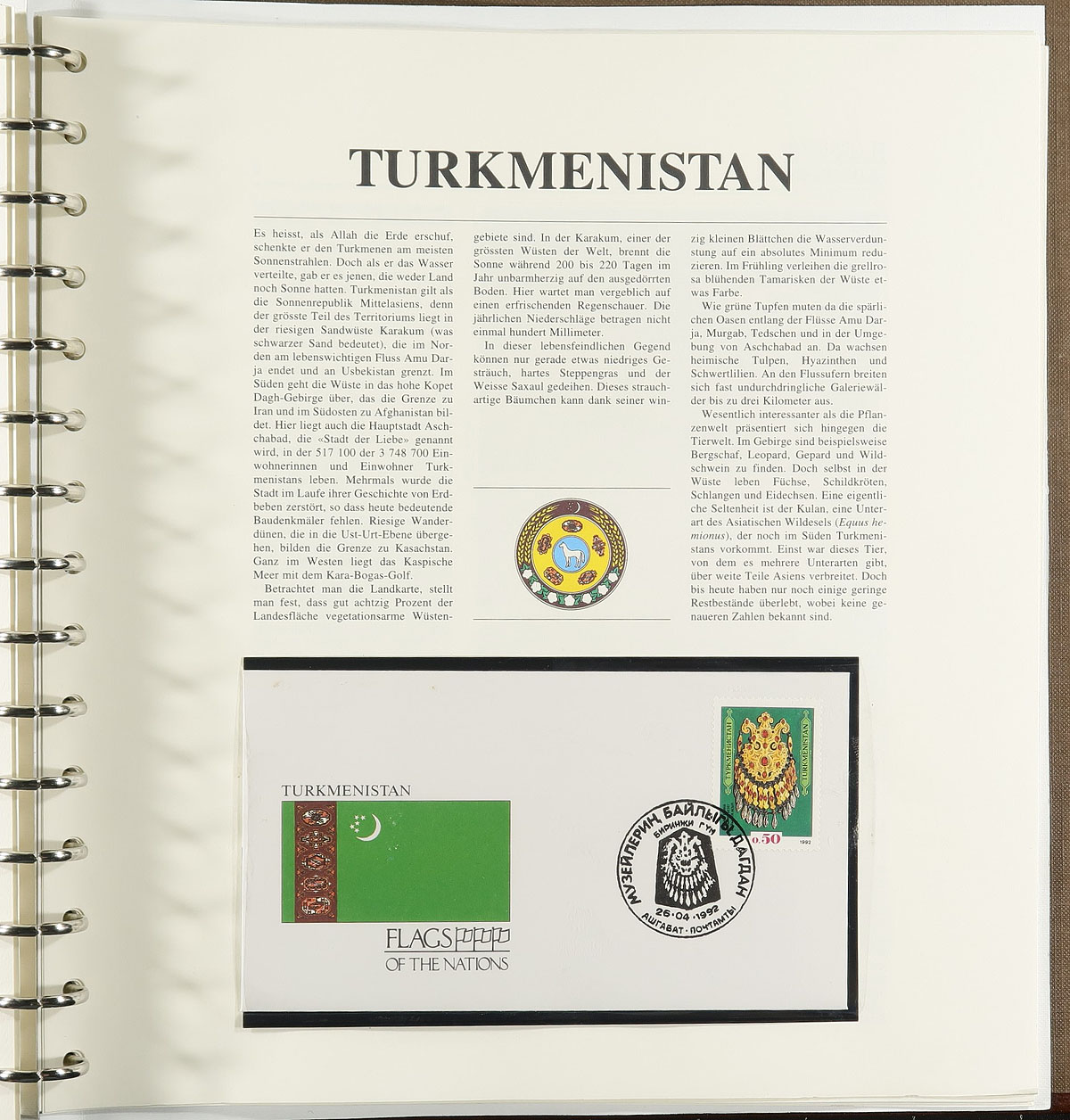 Group of Thematic collections and material filling a carton including: Unicef collection in 4 volumes, U.N. Flag sets 1985-1986, 3 "Our World" packs, FDC Cover of the Month, British Royalty stamps, and a stockbook containing mint sets with a scenery theme. A nice mixture of stamps and covers for the thematic or topical collector. Estimate =