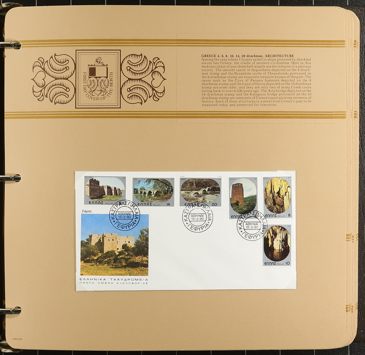 Group of Thematic collections and material filling a carton including: Unicef collection in 4 volumes, U.N. Flag sets 1985-1986, 3 "Our World" packs, FDC Cover of the Month, British Royalty stamps, and a stockbook containing mint sets with a scenery theme. A nice mixture of stamps and covers for the thematic or topical collector. Estimate =