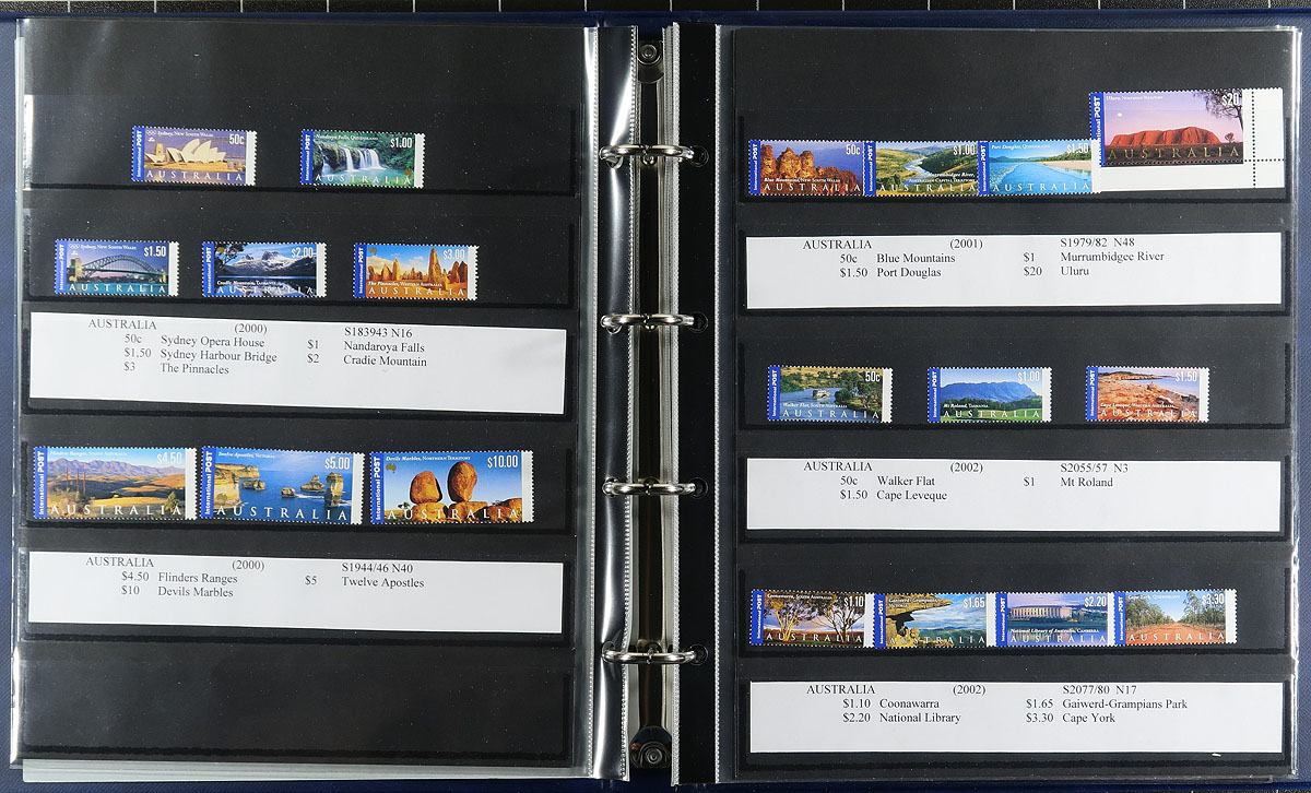 Group of Thematic collections and material filling a carton including: Unicef collection in 4 volumes, U.N. Flag sets 1985-1986, 3 "Our World" packs, FDC Cover of the Month, British Royalty stamps, and a stockbook containing mint sets with a scenery theme. A nice mixture of stamps and covers for the thematic or topical collector. Estimate =