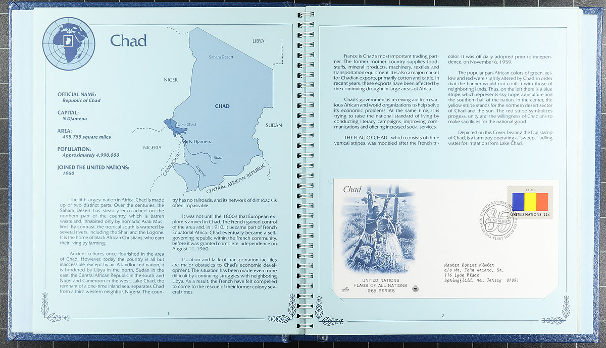 Group of Thematic collections and material filling a carton including: Unicef collection in 4 volumes, U.N. Flag sets 1985-1986, 3 "Our World" packs, FDC Cover of the Month, British Royalty stamps, and a stockbook containing mint sets with a scenery theme. A nice mixture of stamps and covers for the thematic or topical collector. Estimate =