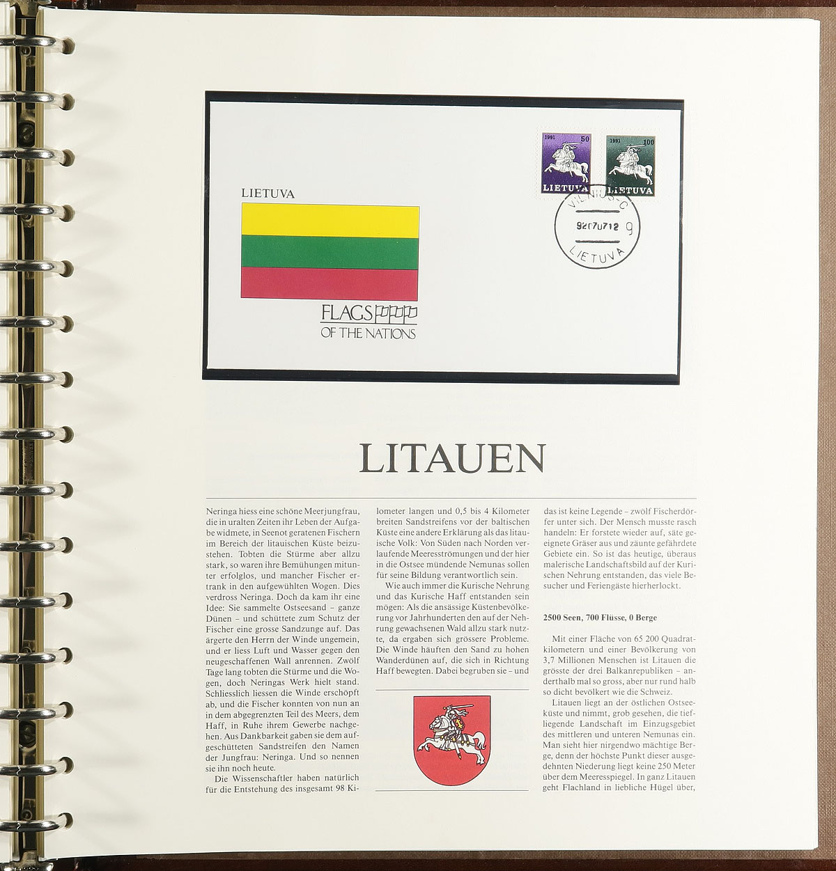 Group of Thematic collections and material filling a carton including: Unicef collection in 4 volumes, U.N. Flag sets 1985-1986, 3 "Our World" packs, FDC Cover of the Month, British Royalty stamps, and a stockbook containing mint sets with a scenery theme. A nice mixture of stamps and covers for the thematic or topical collector. Estimate =