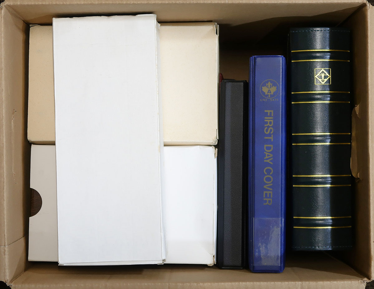 Group of 15 cover albums, mostly double page albums, with 7 still having the slipcase. Many are still in new or barely used condition. Ideal for the postal history or first day cover collector. Retail prices for these albums would generally be in the $25 to $40 range each. Estimate =