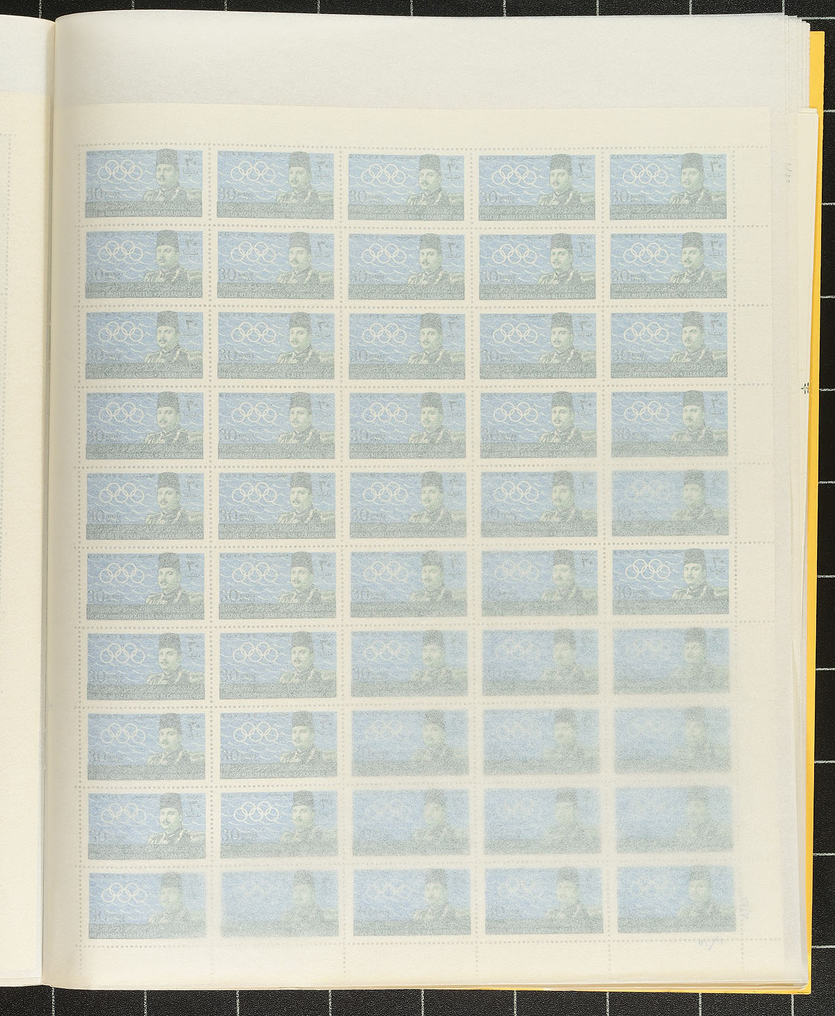 A pair of mint sheet files with complete sheets and partial sheets with a scattering of commemoratives from the 1930’s-1950’s. Includes three sheets each of #153-154 (from the Cairo Medical Conference). There is one sheet each of #258-264 and #292-294, with two sheets each of #296-298. The small sheetlet #447-451 has 17 panes of 25 (plus a partial pane and CTO pane not counted) finishing with #467-472 in panes with three stamps missing from the upper left corner, leaving 47 stamps each. Overall condition is quite good with stamps being never hinged, and only minor faults noted. 2024 Scott US$1616.45 =