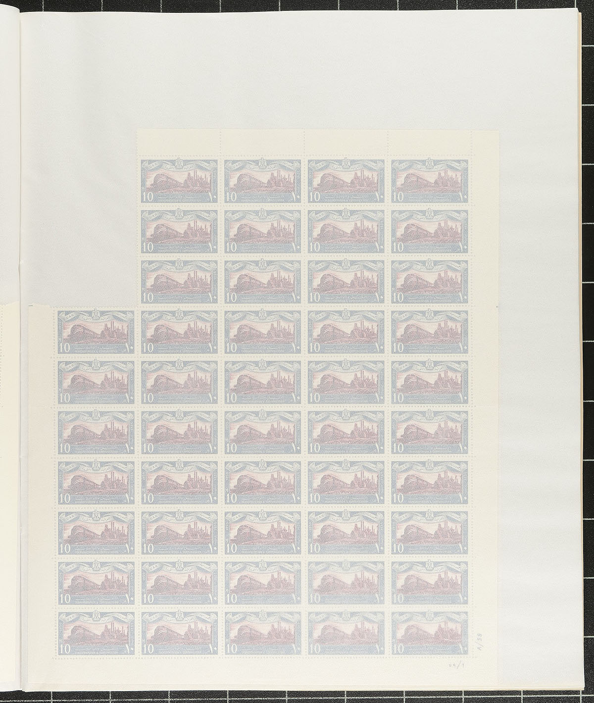 A pair of mint sheet files with complete sheets and partial sheets with a scattering of commemoratives from the 1930’s-1950’s. Includes three sheets each of #153-154 (from the Cairo Medical Conference). There is one sheet each of #258-264 and #292-294, with two sheets each of #296-298. The small sheetlet #447-451 has 17 panes of 25 (plus a partial pane and CTO pane not counted) finishing with #467-472 in panes with three stamps missing from the upper left corner, leaving 47 stamps each. Overall condition is quite good with stamps being never hinged, and only minor faults noted. 2024 Scott US$1616.45 =