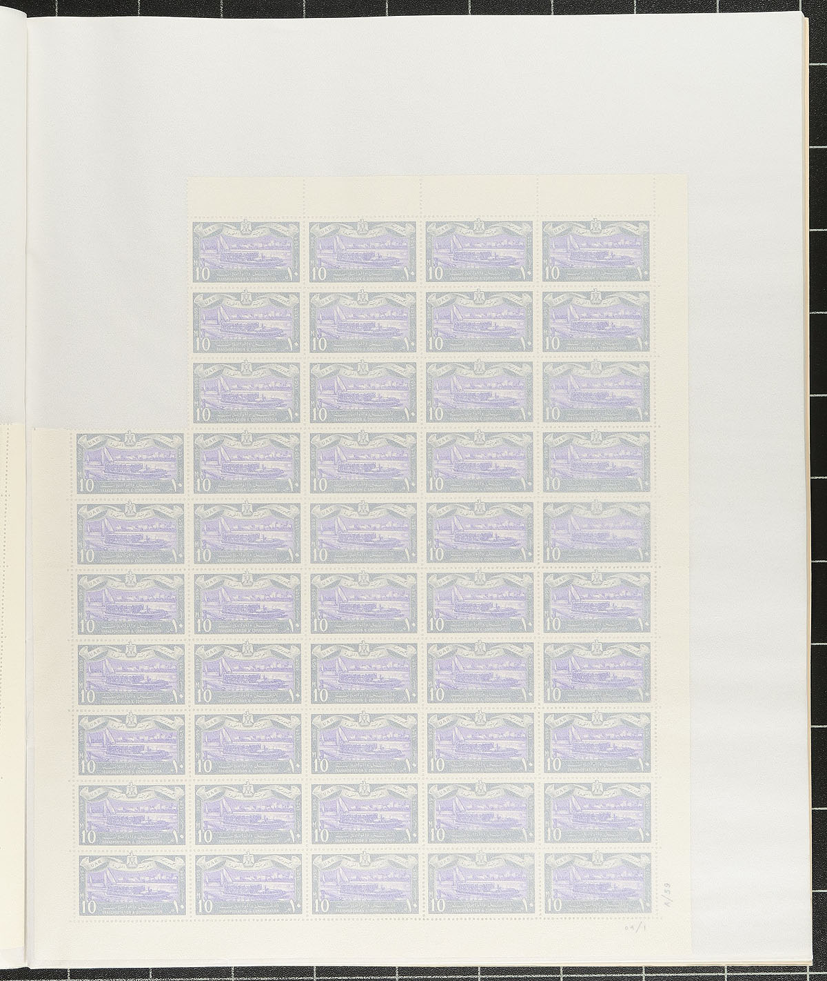 A pair of mint sheet files with complete sheets and partial sheets with a scattering of commemoratives from the 1930’s-1950’s. Includes three sheets each of #153-154 (from the Cairo Medical Conference). There is one sheet each of #258-264 and #292-294, with two sheets each of #296-298. The small sheetlet #447-451 has 17 panes of 25 (plus a partial pane and CTO pane not counted) finishing with #467-472 in panes with three stamps missing from the upper left corner, leaving 47 stamps each. Overall condition is quite good with stamps being never hinged, and only minor faults noted. 2024 Scott US$1616.45 =