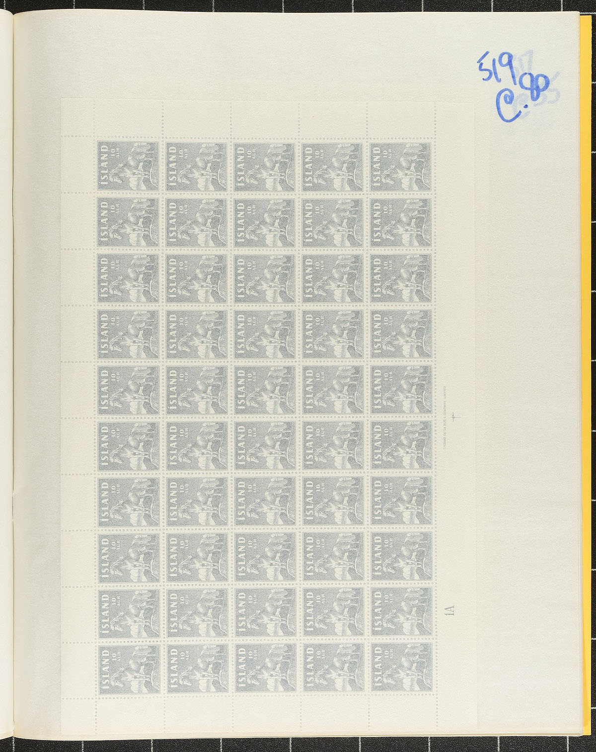 Scandinavia. Complete panes of Iceland and Greenland. The Iceland includes one pane each from #257/290, plus a pane of 20 of #511 and wholesale quantities of the "Horse" #311 (with 20 mint panes and 30 cancelled-to-order panes of 50). Greenland is a pair of stamps #2 and #3 from the first definitive issue, a lovely pane of 100, each. The mint stamps appear to be never hinged, with only a couple of minor edge faults seen. It comes in two mint sheet files. 2024 Scott US$1255.00 =