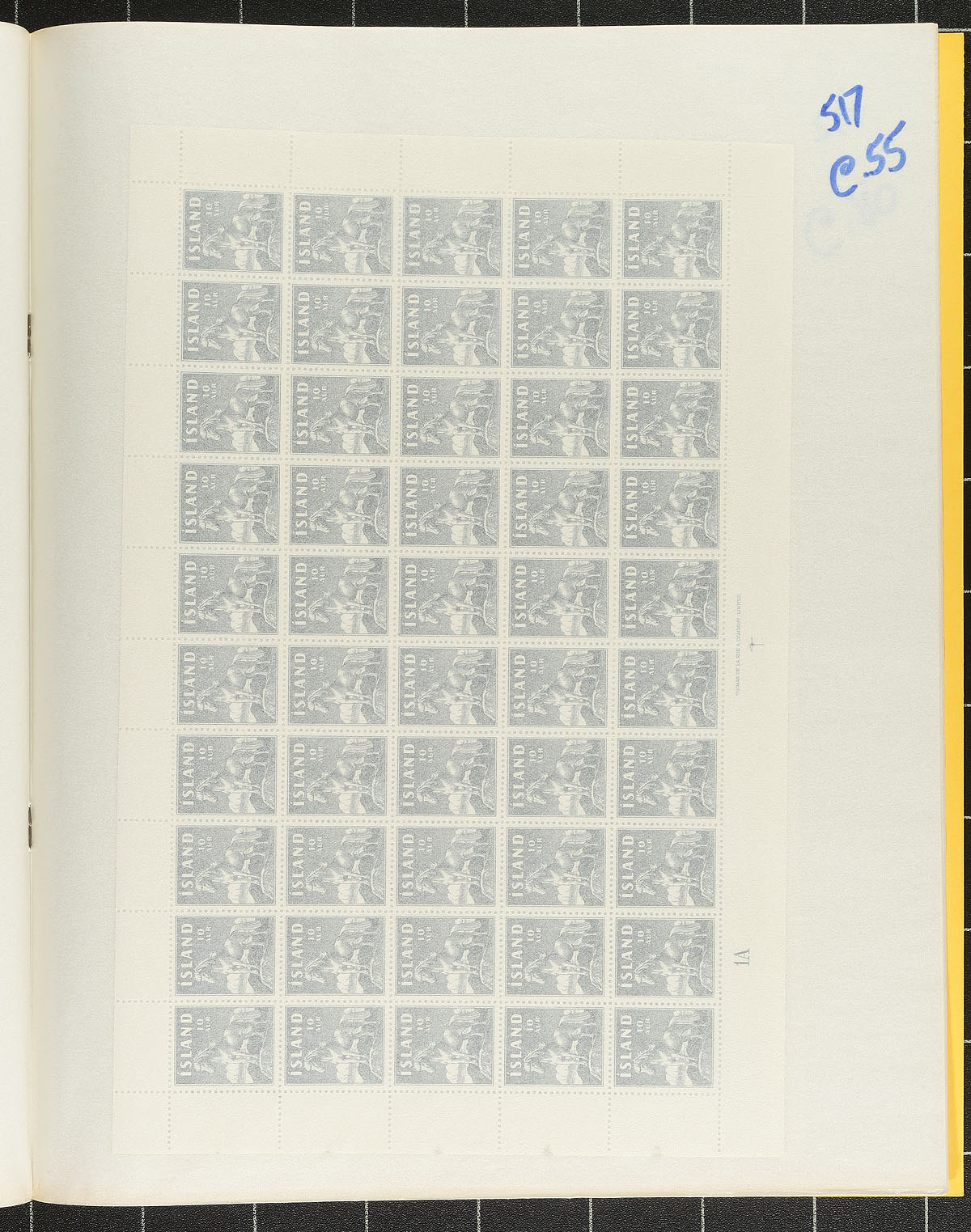 Scandinavia. Complete panes of Iceland and Greenland. The Iceland includes one pane each from #257/290, plus a pane of 20 of #511 and wholesale quantities of the "Horse" #311 (with 20 mint panes and 30 cancelled-to-order panes of 50). Greenland is a pair of stamps #2 and #3 from the first definitive issue, a lovely pane of 100, each. The mint stamps appear to be never hinged, with only a couple of minor edge faults seen. It comes in two mint sheet files. 2024 Scott US$1255.00 =