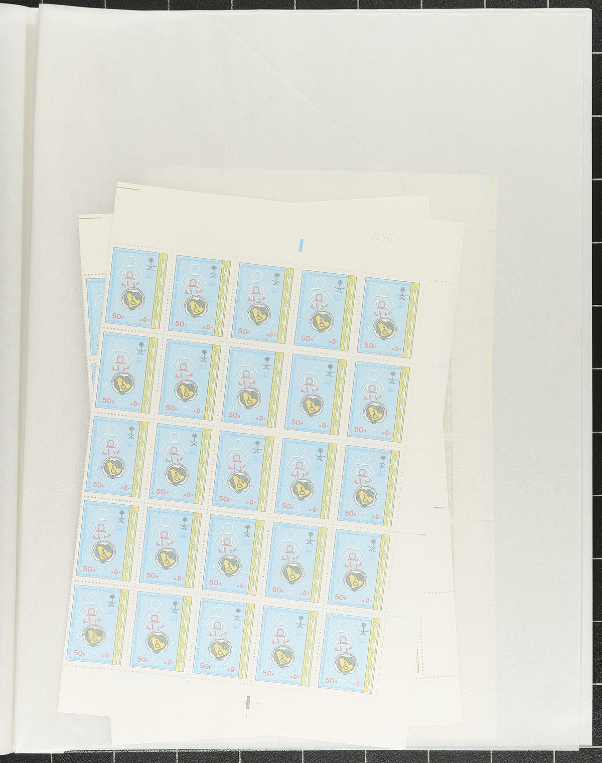A group of multiples from 1986-1987 with six blocks of #1002 (Pilgrimage to Mecca) and then 100 or 110 copies each of #1047-1057 (usually in a couple of complete panes and a couple of extra blocks). All are mint never hinged in glassine pages. Not often seen material. The face value of the stamps is over C$250.00, perfect if you are planning on doing a mailing during your next trip to Riyadh! 2024 Scott US$1520.50 =