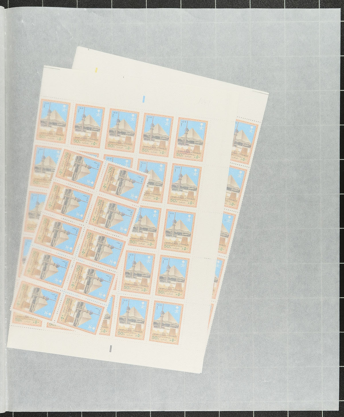 A group of multiples from 1986-1987 with six blocks of #1002 (Pilgrimage to Mecca) and then 100 or 110 copies each of #1047-1057 (usually in a couple of complete panes and a couple of extra blocks). All are mint never hinged in glassine pages. Not often seen material. The face value of the stamps is over C$250.00, perfect if you are planning on doing a mailing during your next trip to Riyadh! 2024 Scott US$1520.50 =