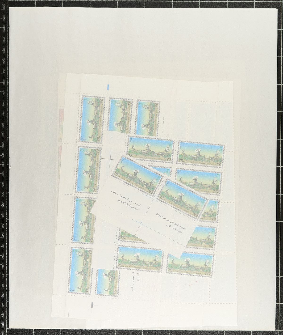 A group of multiples from 1986-1987 with six blocks of #1002 (Pilgrimage to Mecca) and then 100 or 110 copies each of #1047-1057 (usually in a couple of complete panes and a couple of extra blocks). All are mint never hinged in glassine pages. Not often seen material. The face value of the stamps is over C$250.00, perfect if you are planning on doing a mailing during your next trip to Riyadh! 2024 Scott US$1520.50 =