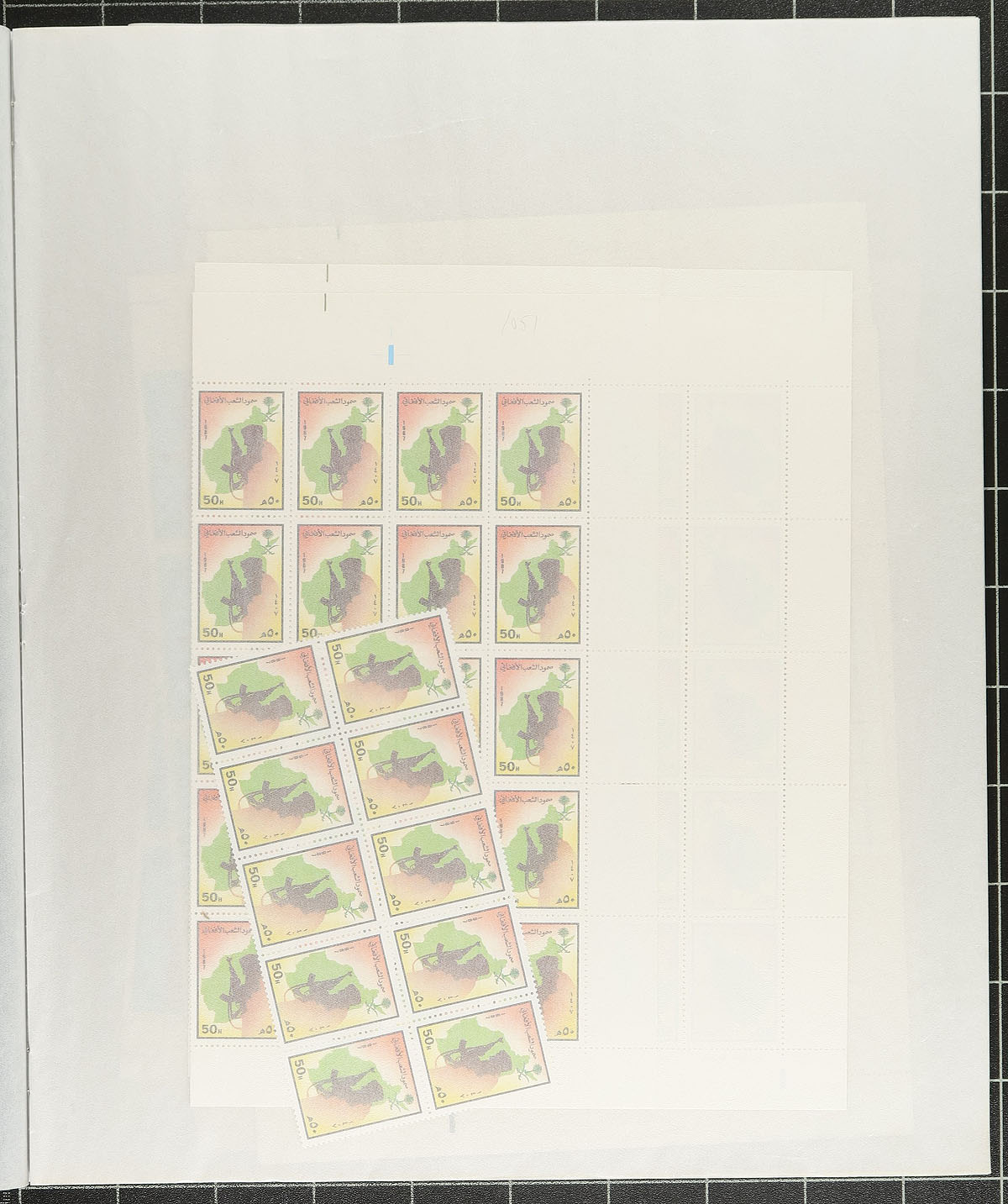 A group of multiples from 1986-1987 with six blocks of #1002 (Pilgrimage to Mecca) and then 100 or 110 copies each of #1047-1057 (usually in a couple of complete panes and a couple of extra blocks). All are mint never hinged in glassine pages. Not often seen material. The face value of the stamps is over C$250.00, perfect if you are planning on doing a mailing during your next trip to Riyadh! 2024 Scott US$1520.50 =