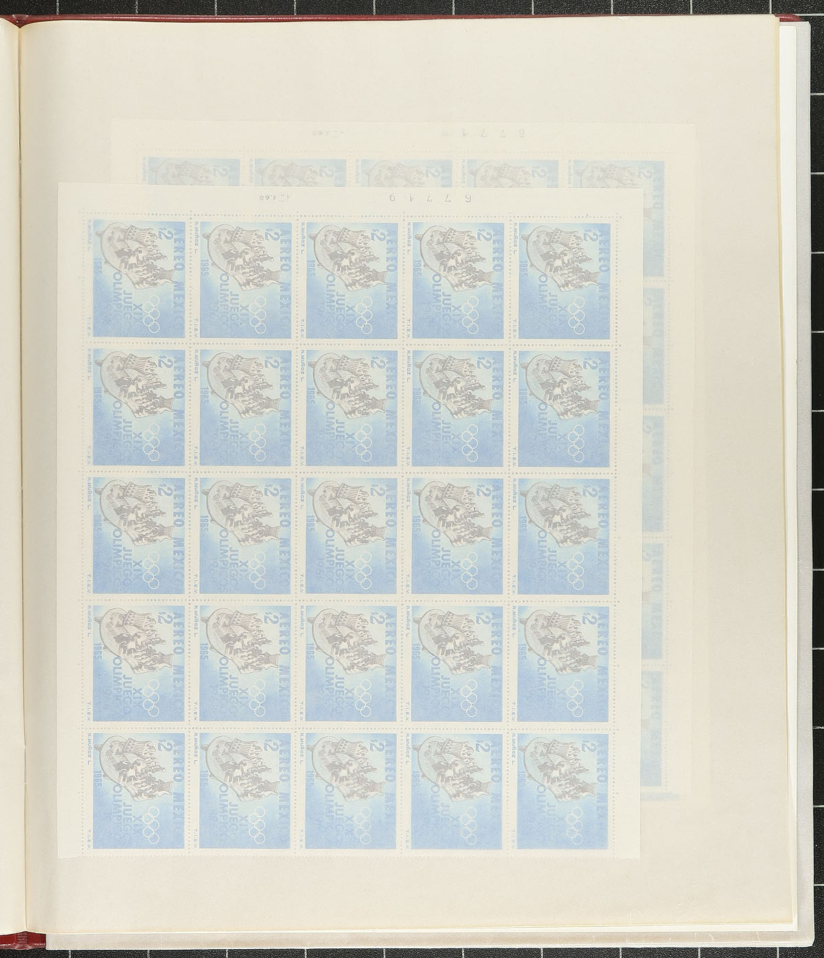 Accumulation of complete panes or large blocks. Starts with the 1965 issue announcing the 1968 Mexico Summer Olympic Games (both the regular issues and the air mails, with 125 complete sets plus a lot of extras). There is also a trio of complete panes (2 regular issue, 1 airmail) from the very popular 1975 "Export" issue (2 or 3 panes of each issue). A quick check indicates that all are mint, never hinged. 2024 Scott US$1546.25 =