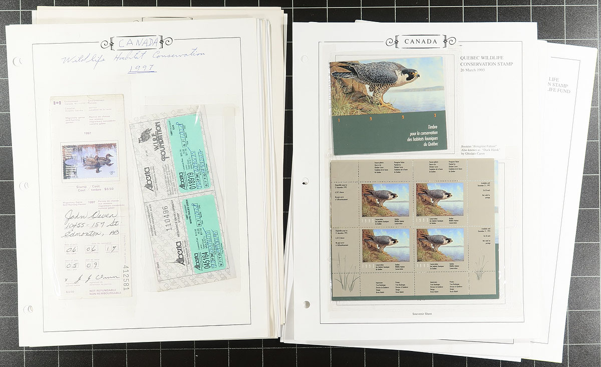 Cinderellas, poster stamps, labels, forgeries, charity, even a bit of ephemera and (GB) perfins. Strength in Canada (group of mint 1980’s-1990’s wildlife stamps, plus three used Alberta licences and a couple of mint panes from Quebec, Royal Hudson sheetlets), United States (nice WWII labels and some post-war fundraising labels), Great Britain (Coronation, Lundy), Europe (WWII Polish labels, forgeries). There is an envelope of "etiquettes" for airmail, special delivery and registration labels. Plus more! Mostly 20th century material, filling an envelope box. Estimate =