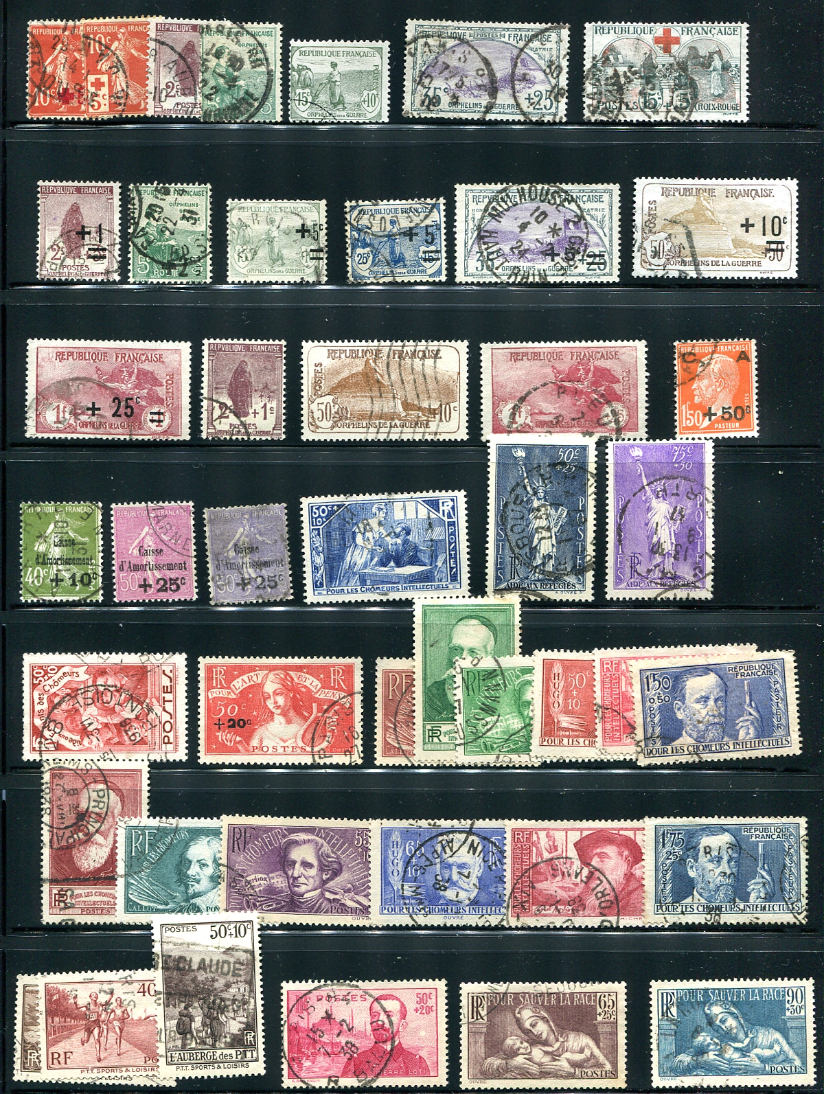 A page of used semi-postals issued 1914 to 1937 including some better overprints and a couple groups of "intellectuals". All postally used, many with readable cancels. Better singles include #B7, #B11, #B22, #B32, #B40. 2024 Scott US$661.70 =