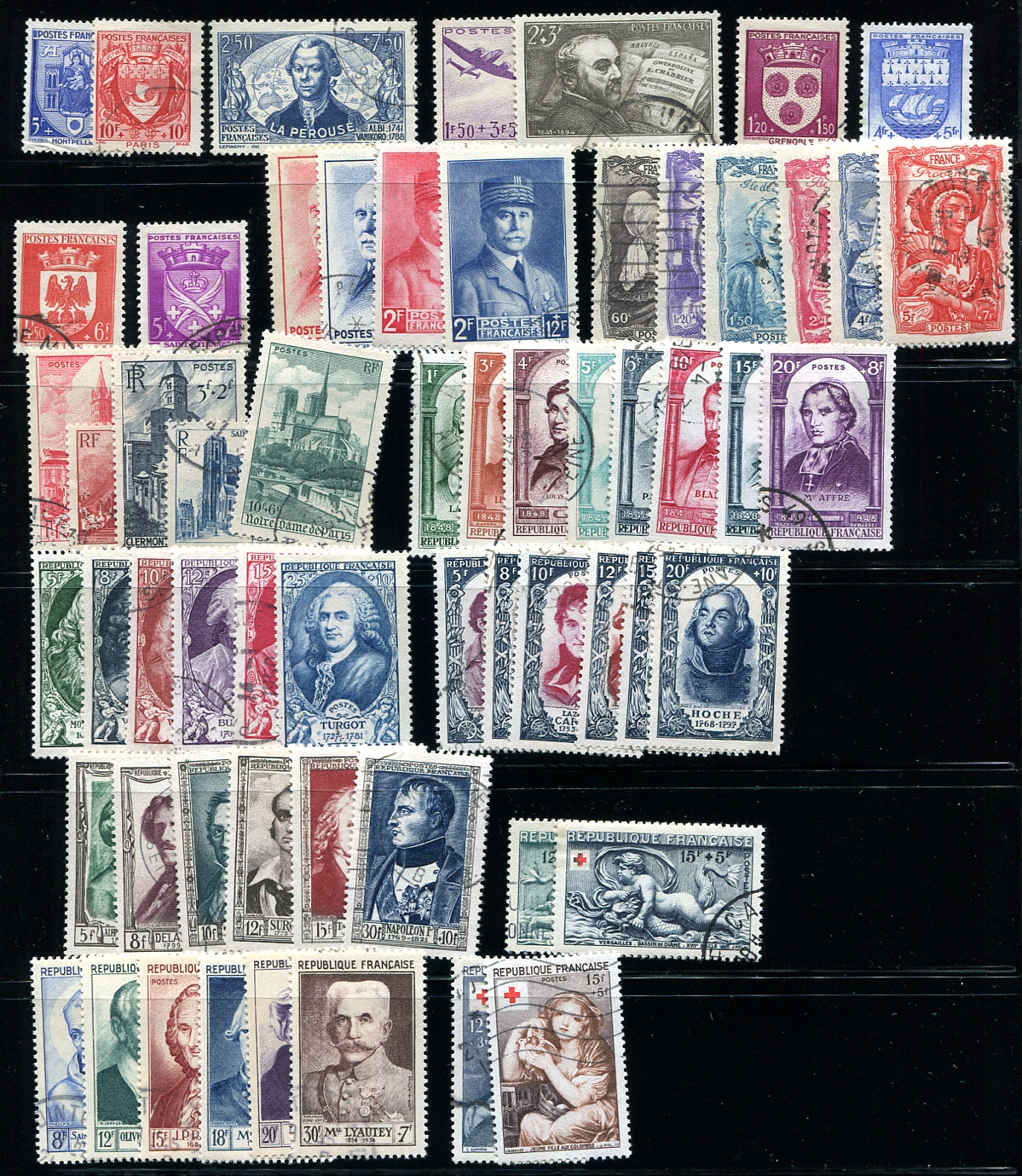 An assortment of used semi-postals issued 1937 to 1954 with "Intellectuals" (such as #B249-B254), "Coat of Arms", "Vichy" and a couple of Red Cross sets. Many with nice cancels, and no obvious faults noted. Lots of $5-$20 sets and singles here. 2024 Scott US$459.65 =