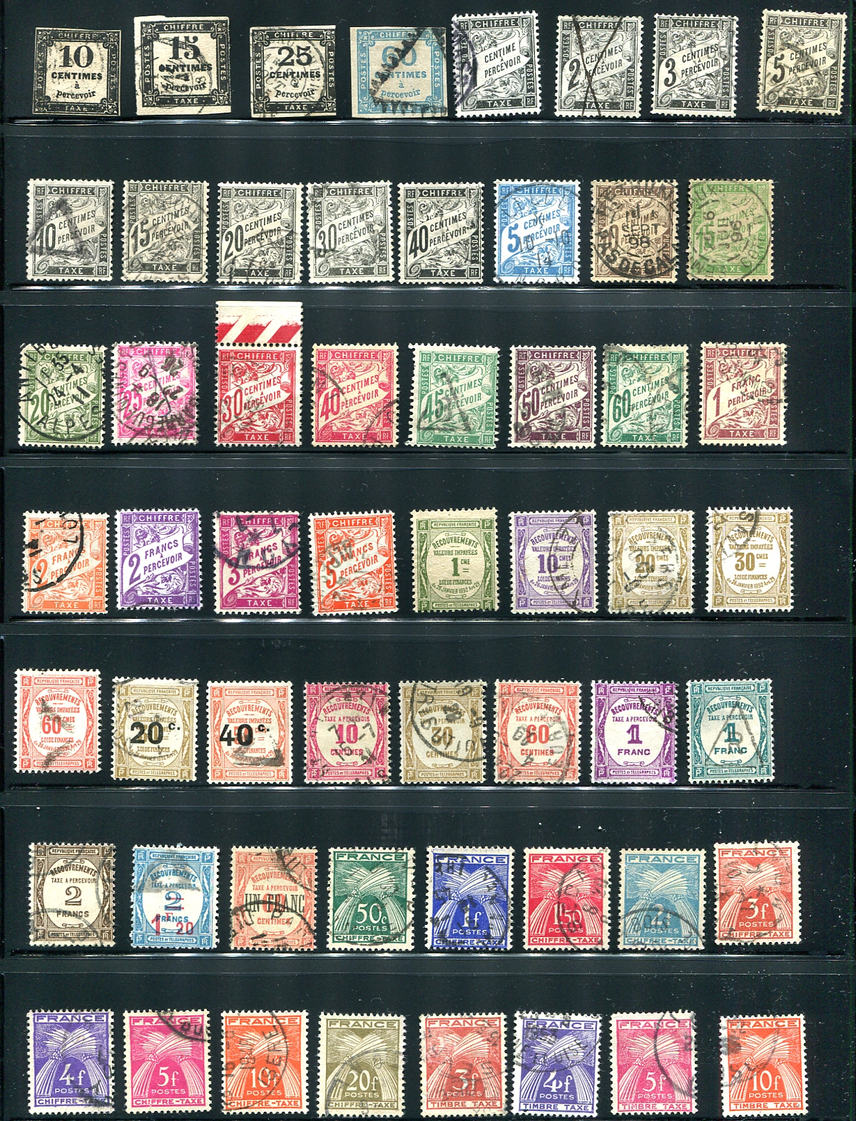 A very nice group of used postage dues, including some imperforate, a good run from the first perforated issue of 1882 and then good coverage with the occasional better item right until the end of these issues. Better singles include: #J6, #J10, #J12, #J13, #J15, #J18, #J20, #J43 and #J65. A nice mix of "triangle" due markings and circular date stamps. 2024 Scott US$663.60 =
