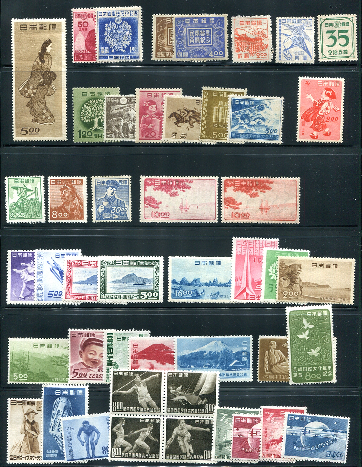 Mint selection of post-war issues to the early 1950’s, a period of reconstruction where there are relatively few "cheap" stamps, with nice definitives, National Parks, "Portraits" as well as a number of attractive commemoratives. Expect them all to be hinged, but a few of the later issues are never hinged. Noted #422, #434, #516 amongst the many stamps cataloguing $5.00-$10.00 each. 2024 Scott US$693.40 =