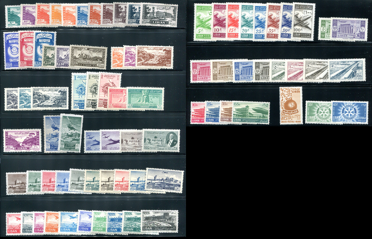 In under nine years, Lebanon issued 80 different airmail stamps, and a mint example of almost each one is here, just missing most of the expensive 1947 "redrawn" issue. The material that is here is fresh, well centered and most are single hinged (with a few that are never hinged), and most are in complete sets. 2024 Scott US$577.25 =
