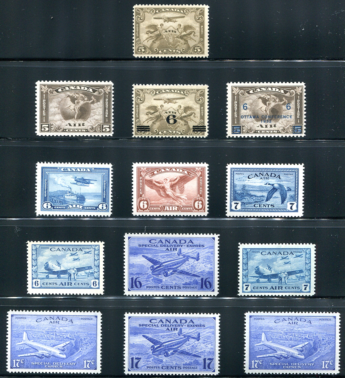 F/VF mint Never Hinged complete runs of both the Airmail (1928-1946) and Special Delivery Airmail (1942-1946) issues, all neatly laid out on a stock page. A very clean and complete run of these issues. 2025 Scott US$221.10 =