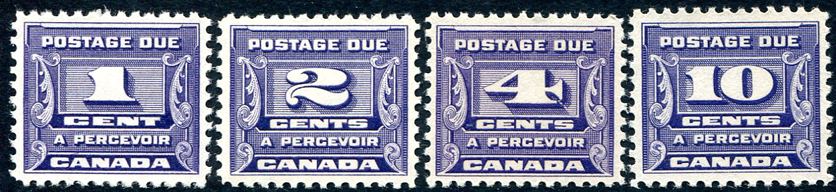 VF mint Never Hinged complete set of four of the 1933-1934 issue postage dues. 2024 Unitrade is $230.00 for a VF MNH set. Undervalued in Scott for this quality. 2025 Scott US$158.00 =