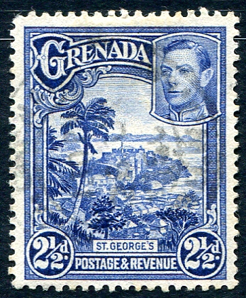 VF used example of the scarce perf 12 ½ x 13 ½ George VI 1938-1942 series 2½d ultramarine. A very pricy stamp mint (US$7500.00 catalogue), and still quite hard to find used. 2025 Scott US$200.00 =