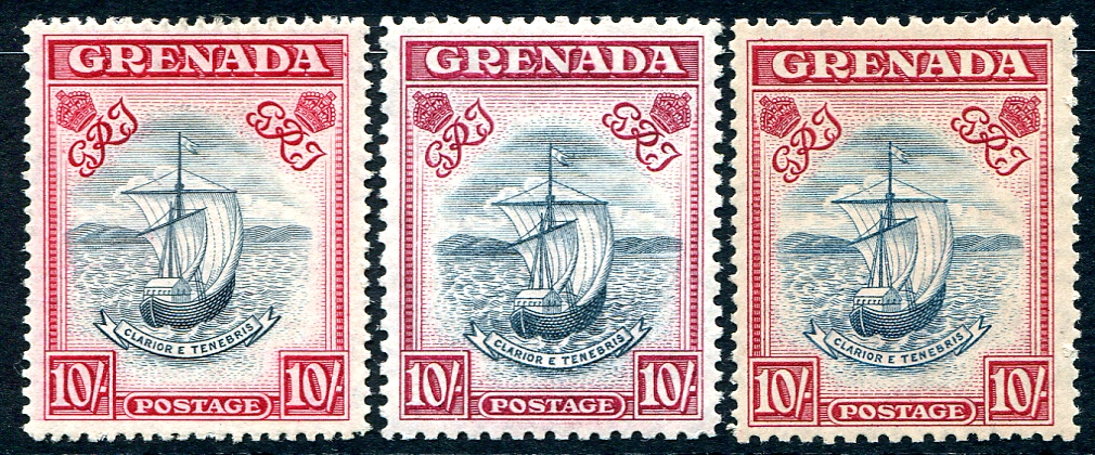 VF mint Lightly Hinged trio of all the perforation varieties of the 1938-1943 George VI "Seal of the Colony" 10sh high-value. The key perforation is the perf 12, in centre of the trio, which catalogues US$500.00 alone! 2025 Scott US$555.00 =