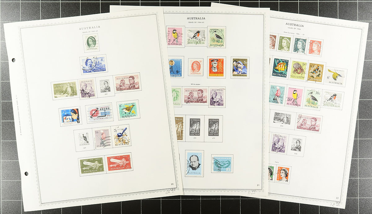 Mounted mint and used collection, on Minkus brand pages of 694 different stamps, from the 1913-1974 period including Postage Dues, Airmail and Australian Antarctic Territory (AAT). Expect a couple small faults, but overall very clean and well laid-out by the previous owner. 2025 Scott US$2257.60 =