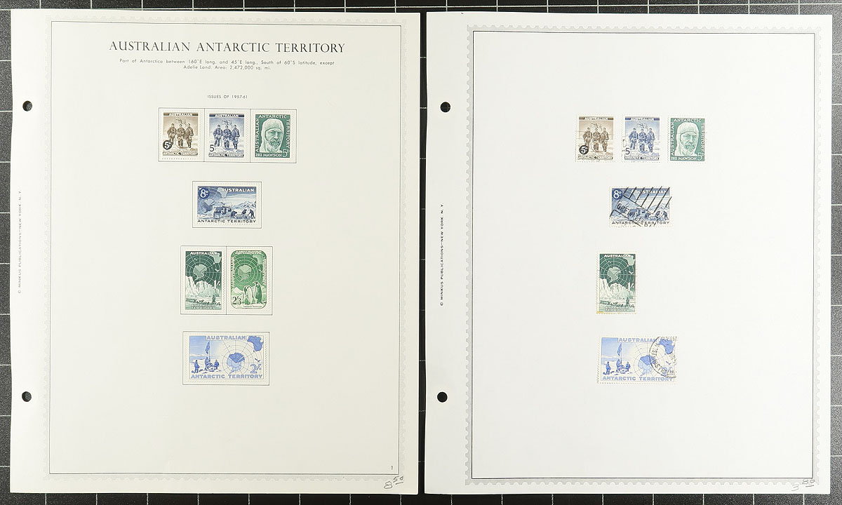 Mounted mint and used collection, on Minkus brand pages of 694 different stamps, from the 1913-1974 period including Postage Dues, Airmail and Australian Antarctic Territory (AAT). Expect a couple small faults, but overall very clean and well laid-out by the previous owner. 2025 Scott US$2257.60 =