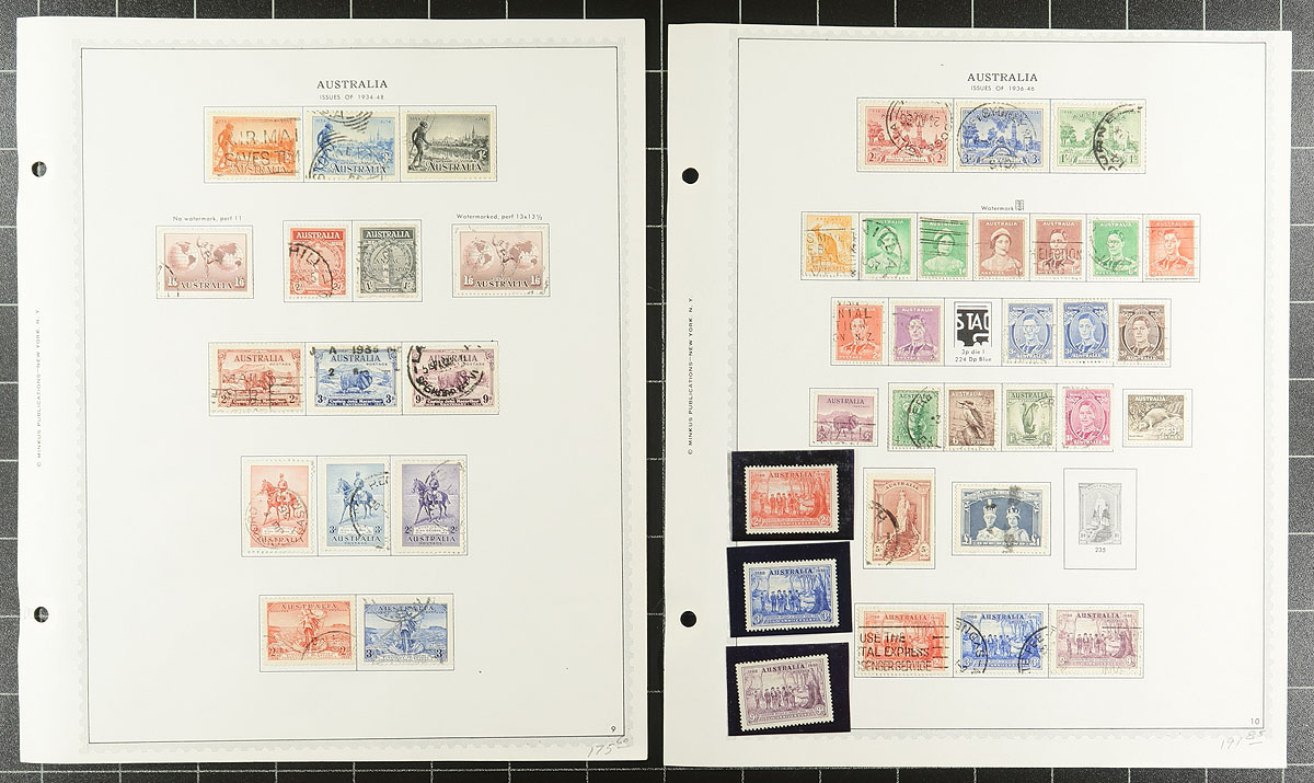 Mounted mint and used collection, on Minkus brand pages of 694 different stamps, from the 1913-1974 period including Postage Dues, Airmail and Australian Antarctic Territory (AAT). Expect a couple small faults, but overall very clean and well laid-out by the previous owner. 2025 Scott US$2257.60 =