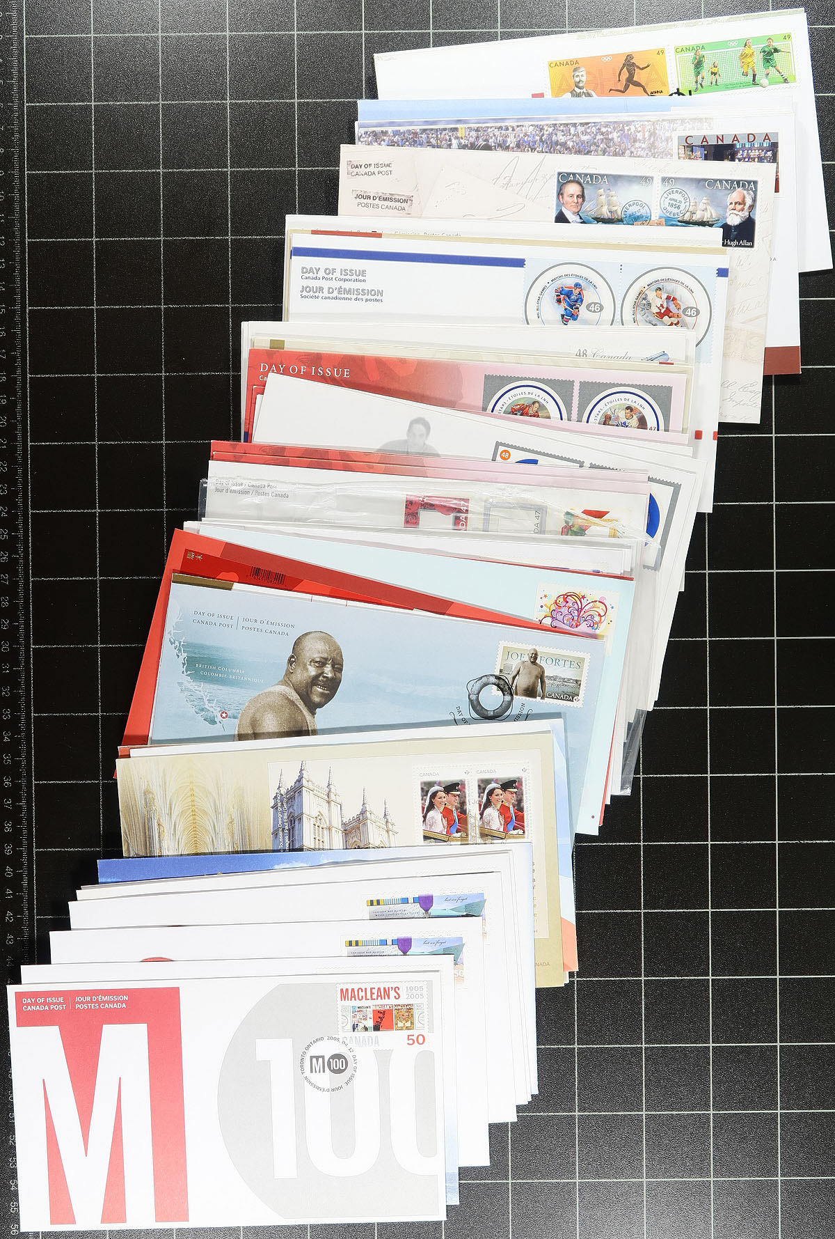 First Day Covers. Group of roughly 220 Canada first day covers, all post 2000 up to roughly 2013, noting singles, sets, souvenir sheets, and a few high denomination frankings. A clean group with almost no duplication. Ideal for collectors and dealers. Estimate =