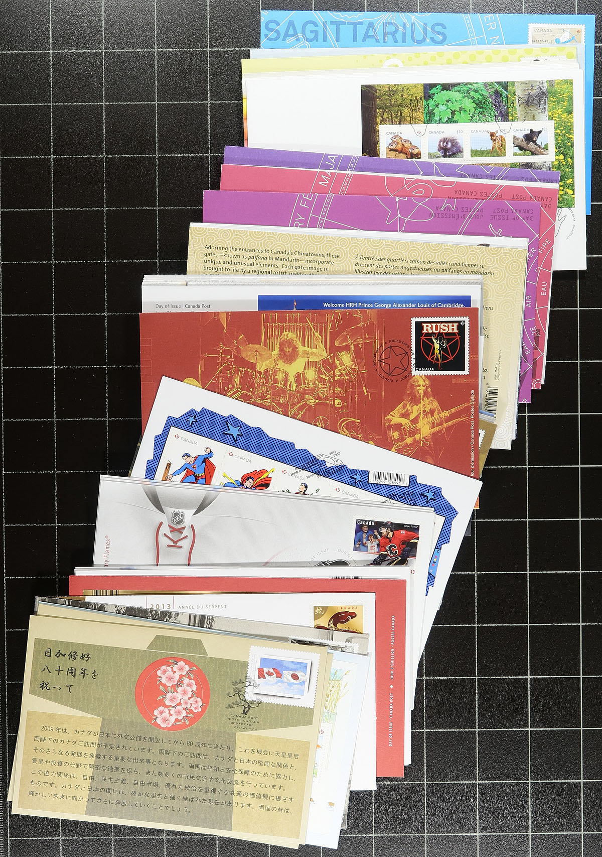 First Day Covers. Group of roughly 220 Canada first day covers, all post 2000 up to roughly 2013, noting singles, sets, souvenir sheets, and a few high denomination frankings. A clean group with almost no duplication. Ideal for collectors and dealers. Estimate =